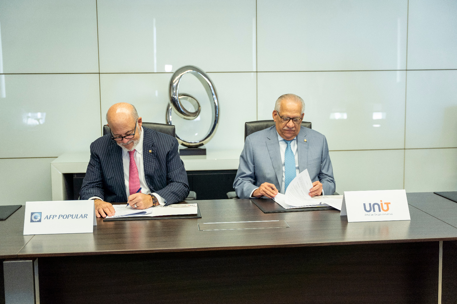 SANTO DOMINGO, RD.- La Administradora de Fondos de Pensiones Popular (AFP Popular) suscribió un acuerdo con UNIT, la primera aseguradora 100% digital de la región y filial del Grupo Universal, para ofrecer beneficios gratuitos a sus afiliados con productos de seguros diseñados para afrontar situaciones imprevistas, en el marco del programa “Planes de Confianza Absoluta”.