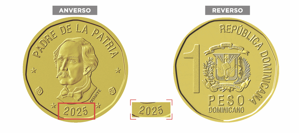 SANTO DOMINGO, RD.- El BCRD informo hoy que a partir del viernes 24 de abril de 2026, circularán las monedas metálicas de la denominación de RD$1.00, año 2025.