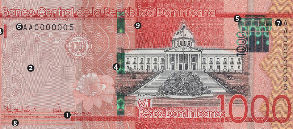 Estos billetes, cuya fabricación se ordenó mediante licitación pública internacional en mayo de 2025, contienen las mismas características de seguridad de los billetes de RD$1,000.00 actualmente en cilrculación, los cuales mantendran su fuerza liberatoria para el pago de todas las obligaciones públicas y privadas.