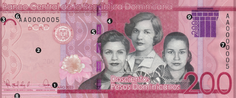 de 2023, contienen las mismas características de seguridad de los billetes de RD$200.00