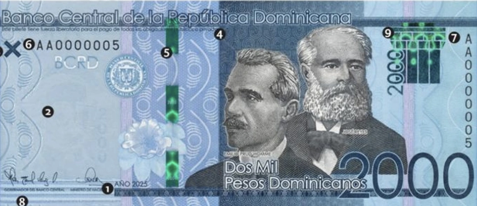 de 2025, contienen las mismas características de seguridad de los billetes de RD$2,000.00
