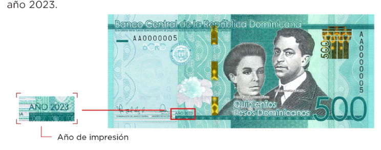 SANTO DOMINGO, RD.- El Banco Central de la República Dominicana, (BCRD), dio a conocer hoy que a partir del viernes 19 de abril de 2024, circularan los billetes de RD$500.00 año 2023.