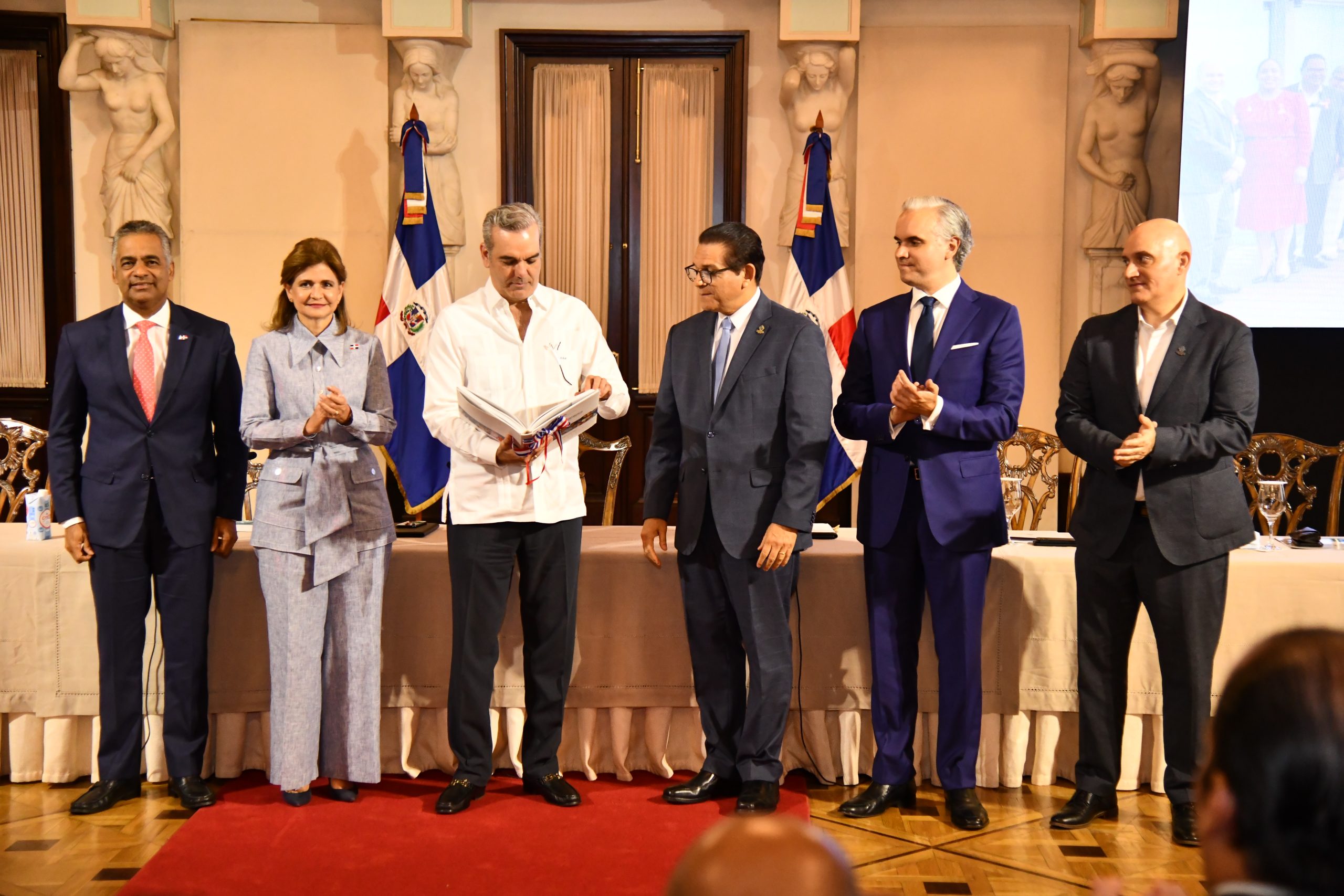 El acto contó también con la presencia de la vicepresidenta de la República, Raquel Peña, quien preside el Gabinete de Salud; el ministro de la Presidencia, Joel Santos; el ministro de Economía, Pavel Isa; el ministro de Trabajo, Luis Miguel De Camps; entre otros.