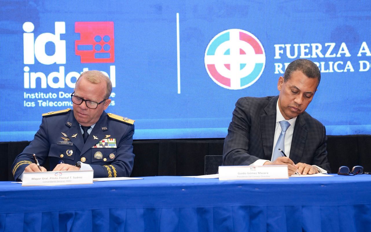 El convenio fue suscrito por el presidente del Consejo Directivo de Indotel, Guido Gómez Mazara, y el comandante general de la Fuerza Aérea de República Dominicana, mayor general piloto Floreal Suárez Martínez.