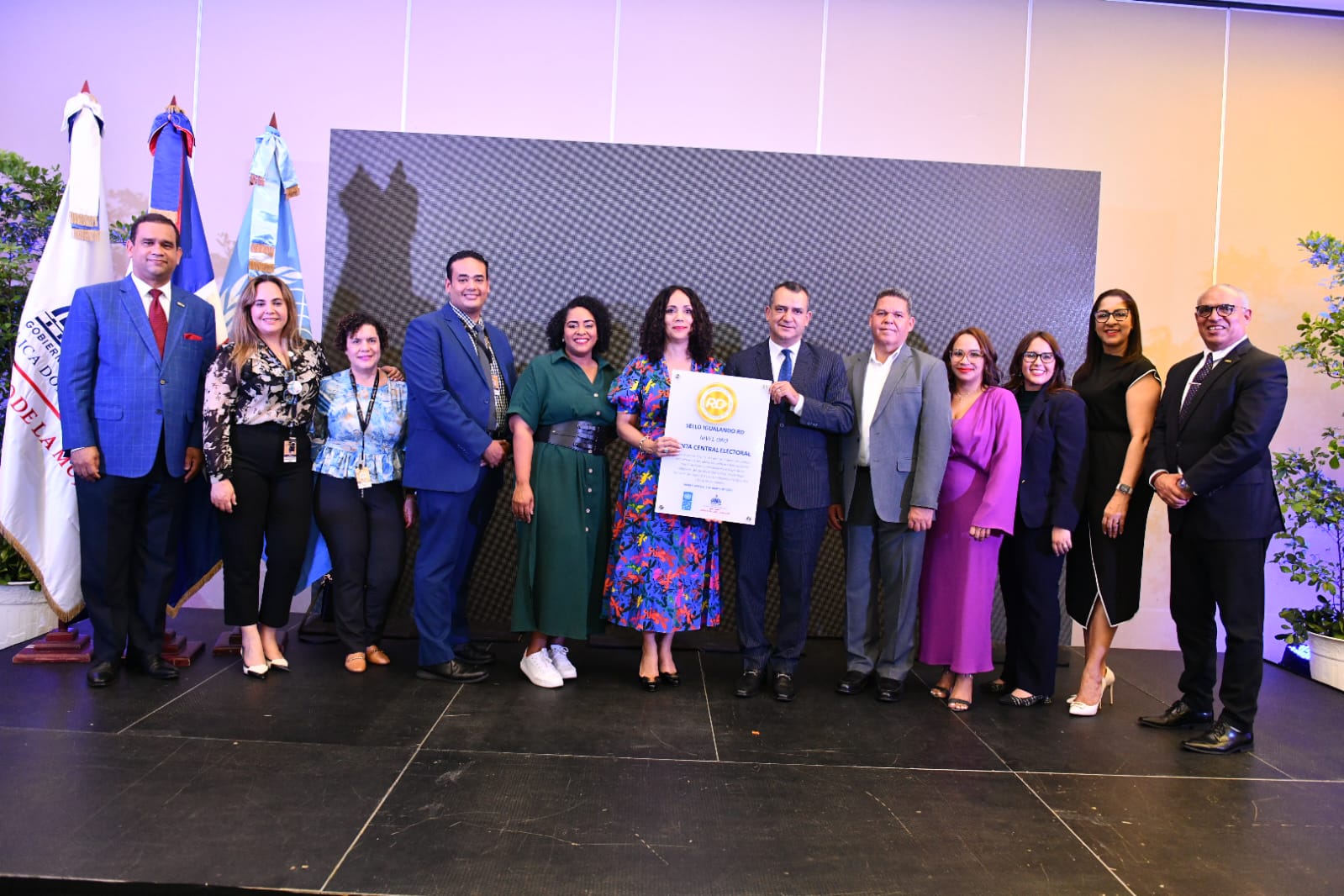 SANTO DOMINGO, RD.- La Junta Central Electoral (JCE) recibió el galardón en la categoría oro del «Sello Igualando RD» para el sector público, por su compromiso, esfuerzo y trabajo sostenido en promover la paridad y los derechos de las mujeres de manera interna y externa en materia electoral y de identidad ciudadana.