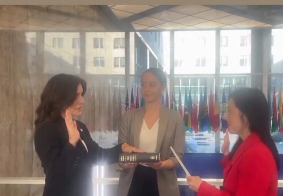 La juramentación fue comunicada por la diplomática, quien publicó el acto en su cuenta de Instagram.