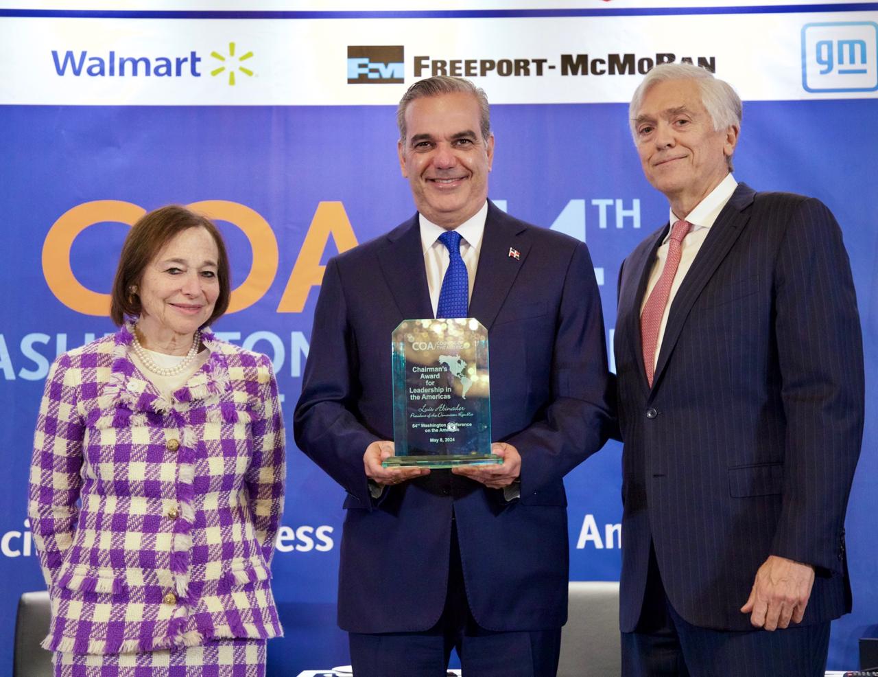 WASHINGTON, D.C.– El presidente Luis Abinader recibió este miércoles el premio Chairman’s Award for Leadership in the Americas en la 54 Conferencia sobre las Américas, siendo el mandatario dominicano en recibir dicha distinción otorgado por el Consejo de las Américas.