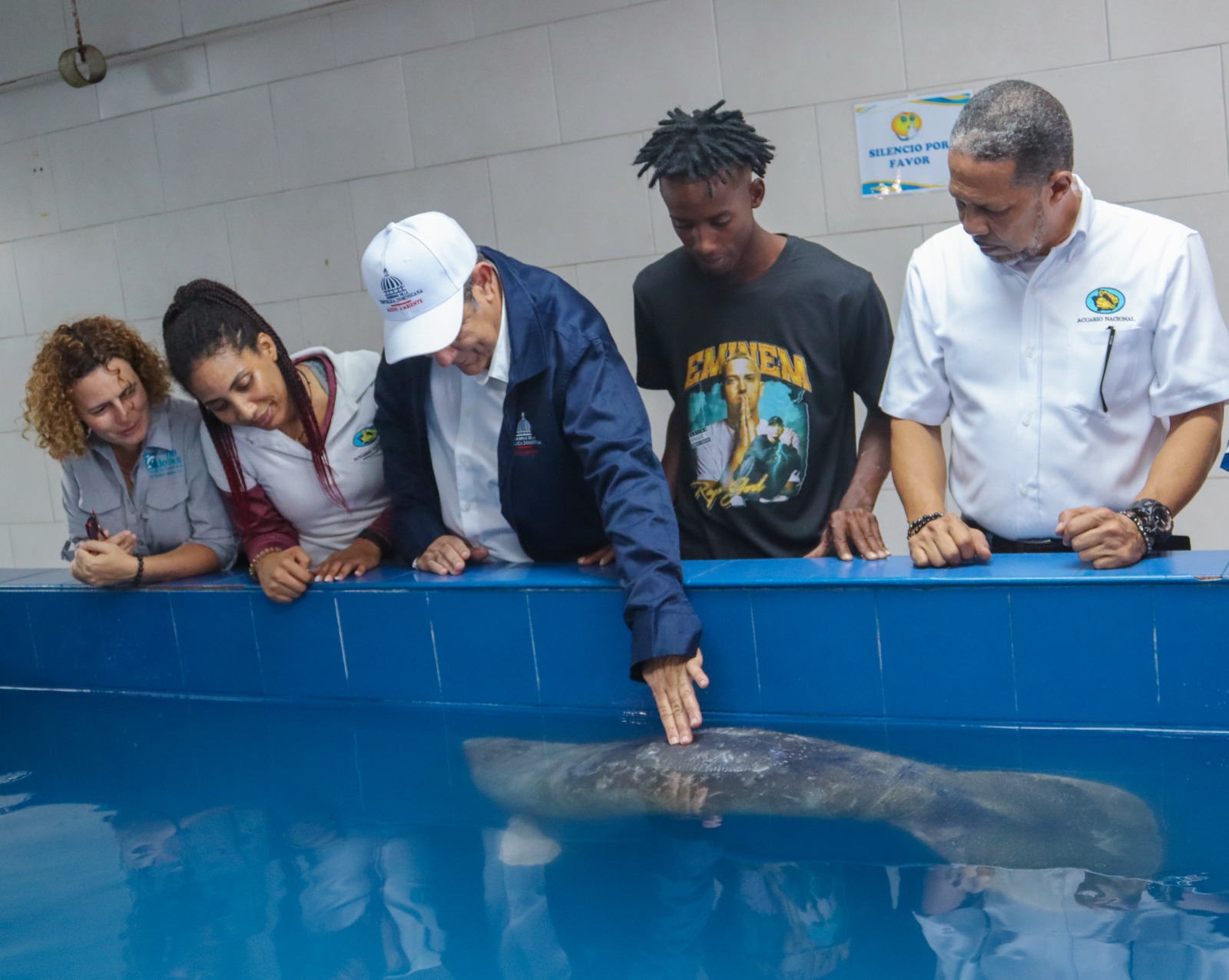 El viceministro de Recursos Costeros y Marinos, José Ramón Reyes, realizó una visita de inspección al Acuario Nacional, donde pudo constatar que el manatí se encuentra en buen estado físico y recibiendo todos los cuidados requeridos para poder ser liberado.