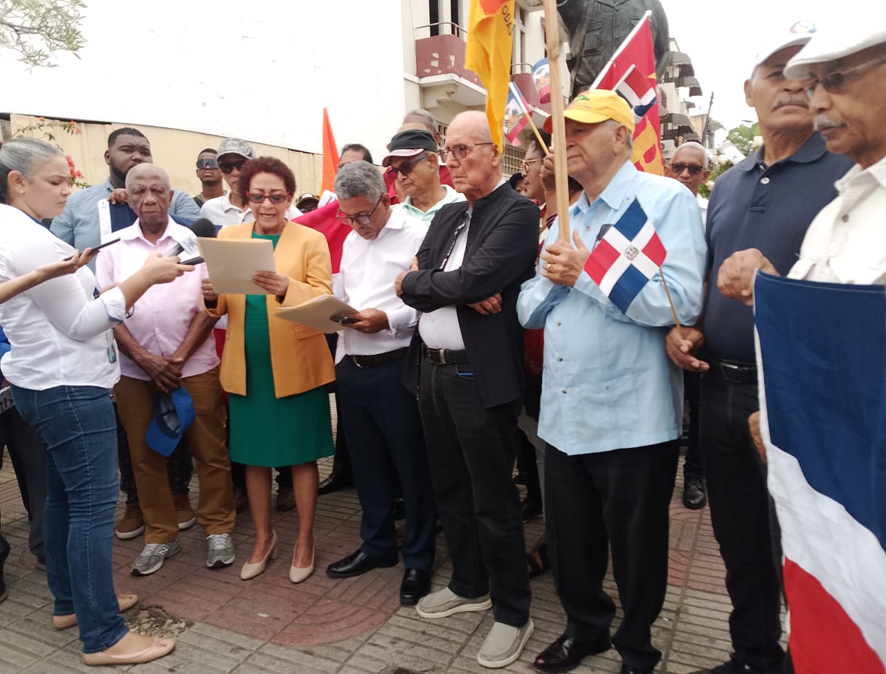 Tras entonar el himno nacional y el de la revolución de abril, María Teresa Cabrera, vocera de los seis grupos, leyó un manifiesto en el que establecen que “la invasión militar estadounidense de 1965 impidió a sangre y fuego la revolución democrática popular de abril, bloqueó violentamente el despliegue de la república soberana de los comandos de soldados y pueblo combatiente, y ha obstruido hasta la fecha la autodeterminación de nuestra patria”.