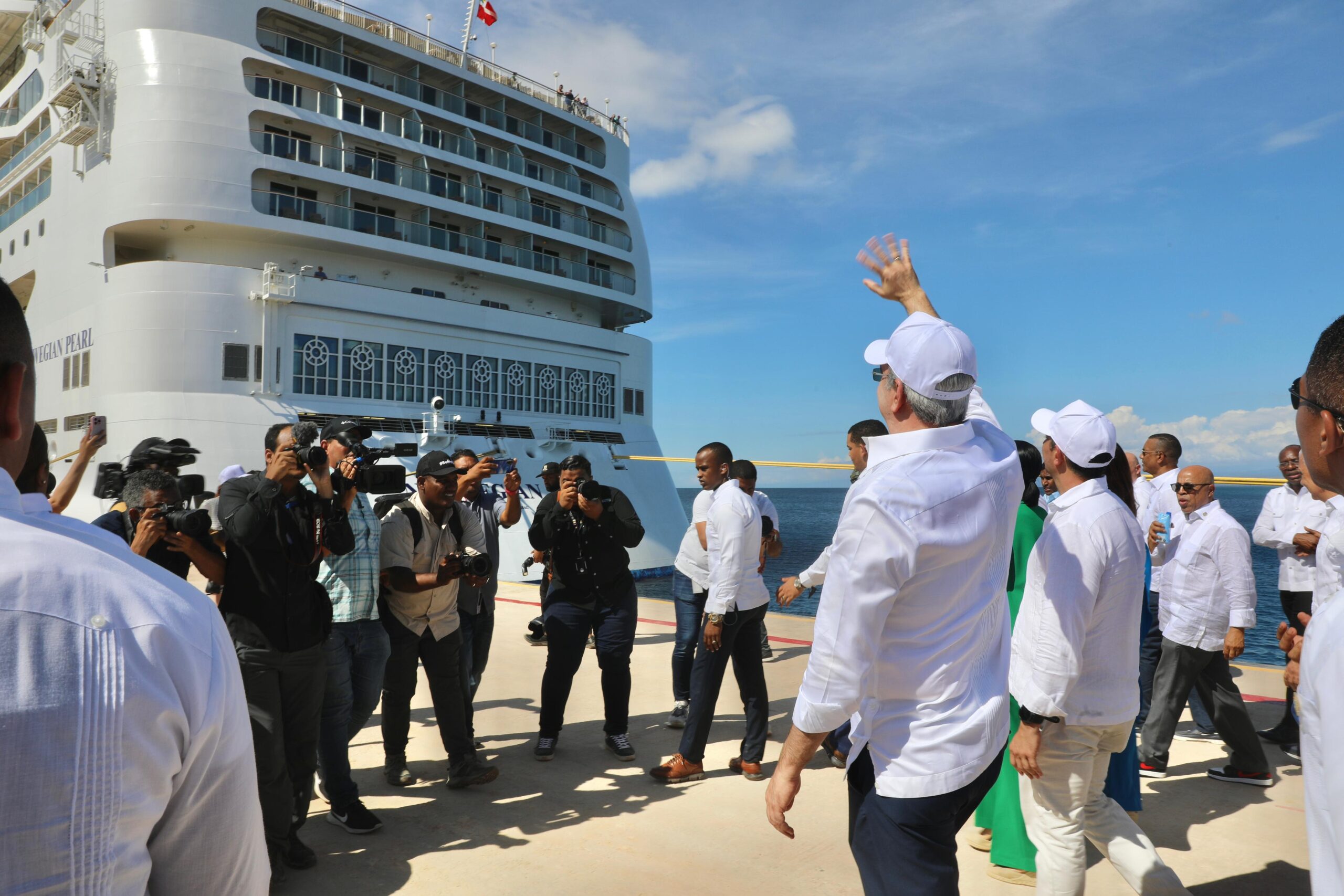 CABO ROJO, PEDERNALES, RD.- En un acontecimiento que calificó como un hito para el turismo no solo de Pedernales, sino de la región y el país, el presidente Luis Abinader recibió este jueves el primer crucero que arriba al país por el puerto de Cabo Rojo, Pedernales, con más de 2,500 cruceristas a bordo.