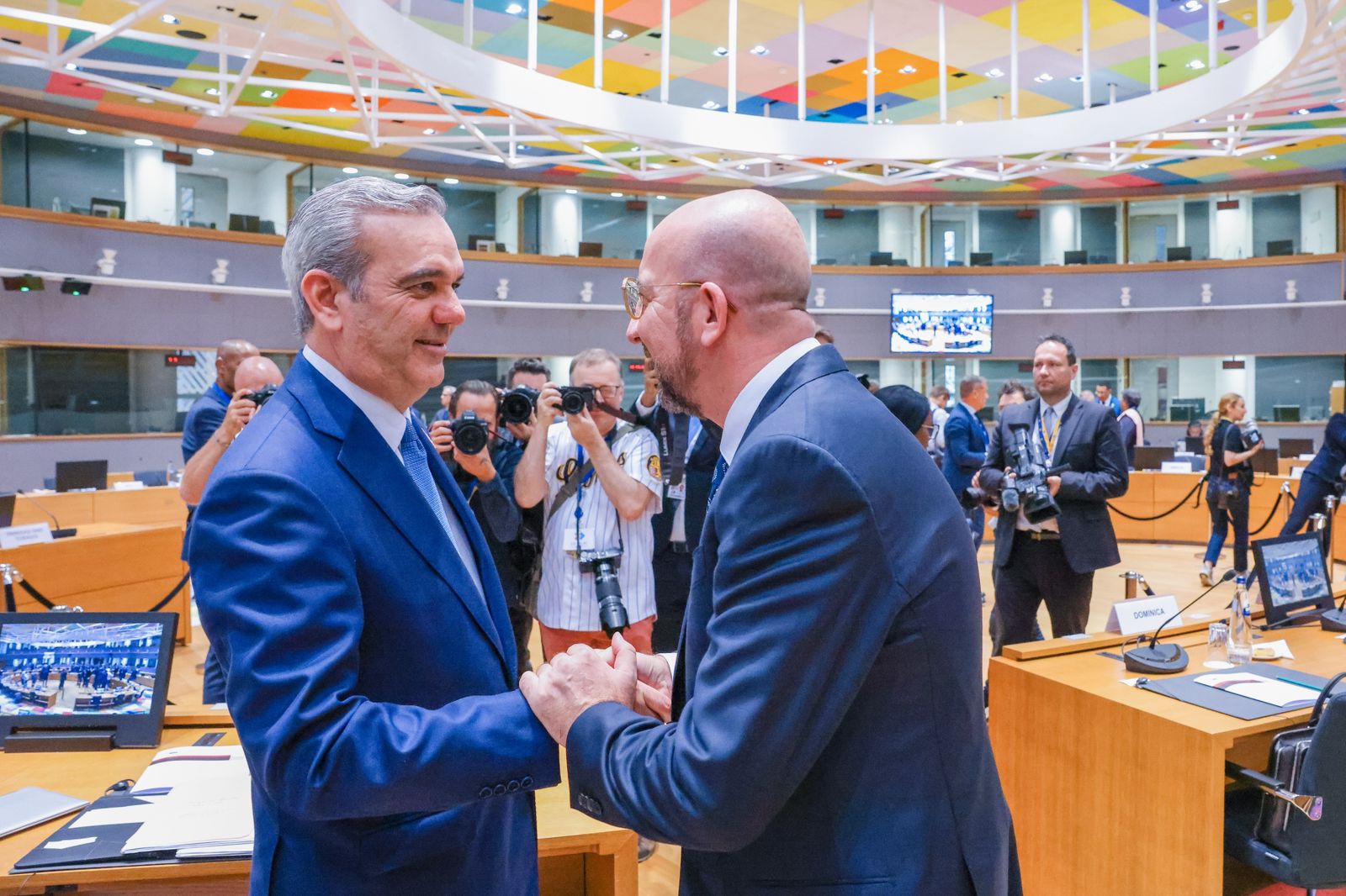 Previo a la reunión entre líderes europeos y del Caribe, Abinader intercambió saludos y conversó por breves minutos con el presidente del Consejo de la Unión Europea, Charles Michel y el presidente del gobierno de España, Pedro Sánchez, entre otros líderes presentes en la Cumbre.