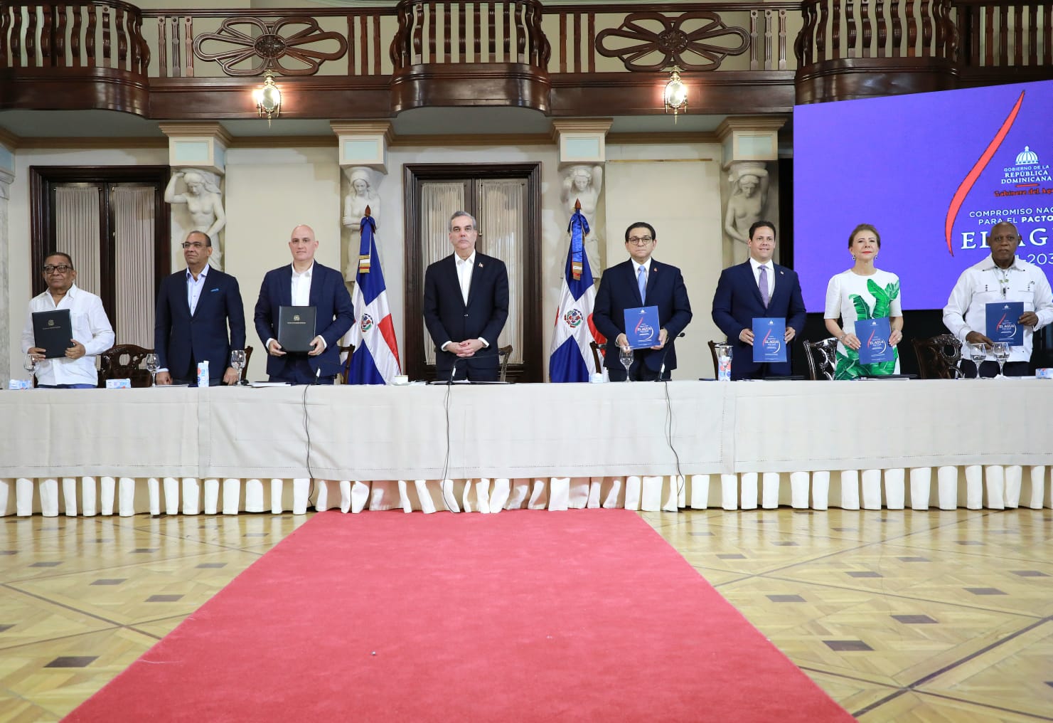 El acto de firma encabezado por el presidente Luis Abinader, donde más de 100 representantes de diversas organizaciones e instituciones firmaron fue realizado en el salón Las Cariátides del Palacio Nacional.