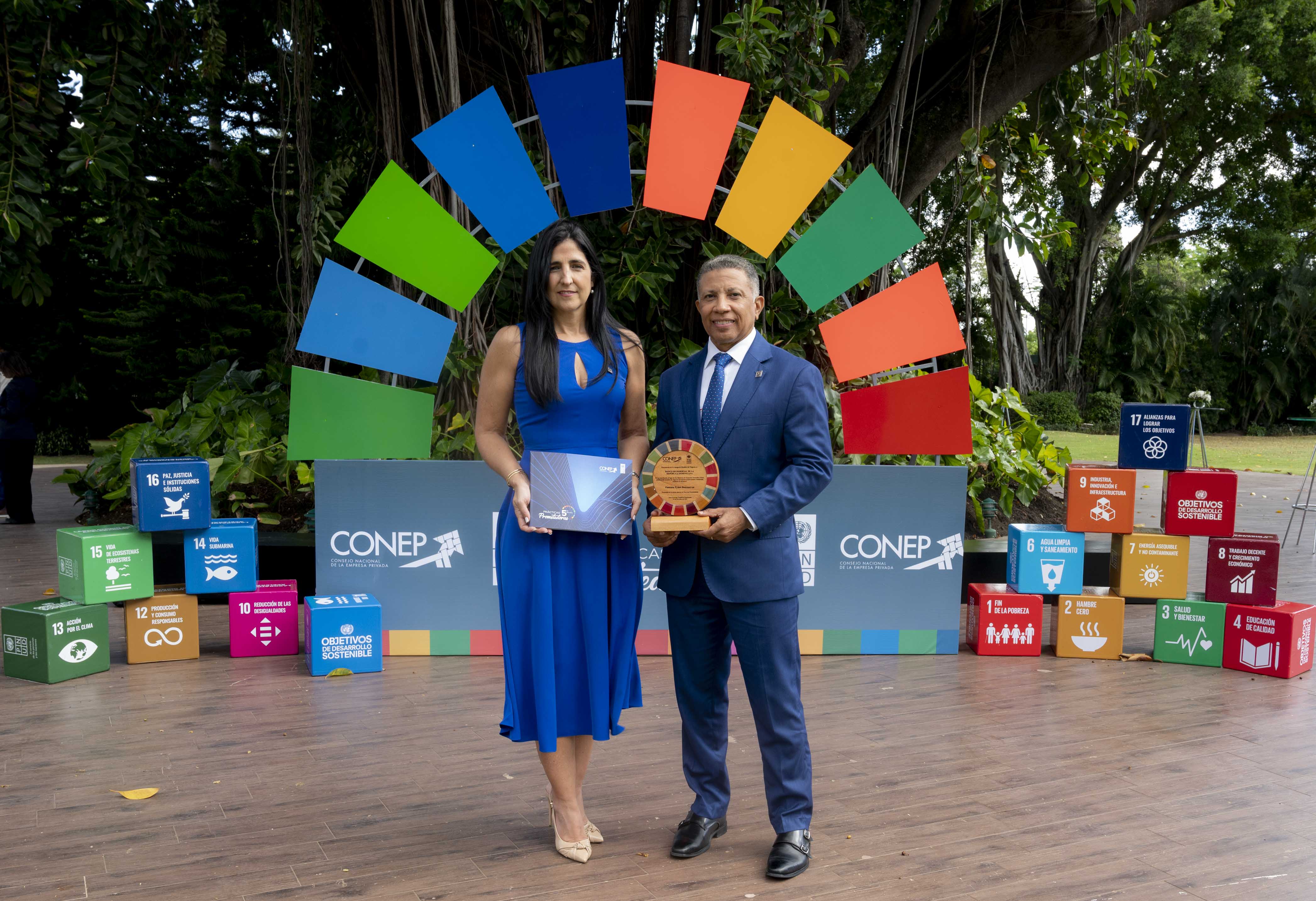 El galardón fue recibido por el director senior de Pymes de Banreservas, Juan Carlos García; y la directora de Sostenibilidad y Responsabilidad Social de la institución bancaria, Raquel Giraldez.