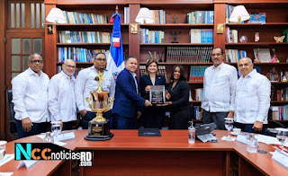 SANTO DOMINGO, RD.- La vicepresidente Raquel Peña recibió de manera oficial la placa que la distingue con la dedicatoria del XVIII Torneo de Baloncesto Superior de San Juan, en un encuentro celebrado en uno de los salones del Palacio Nacional.