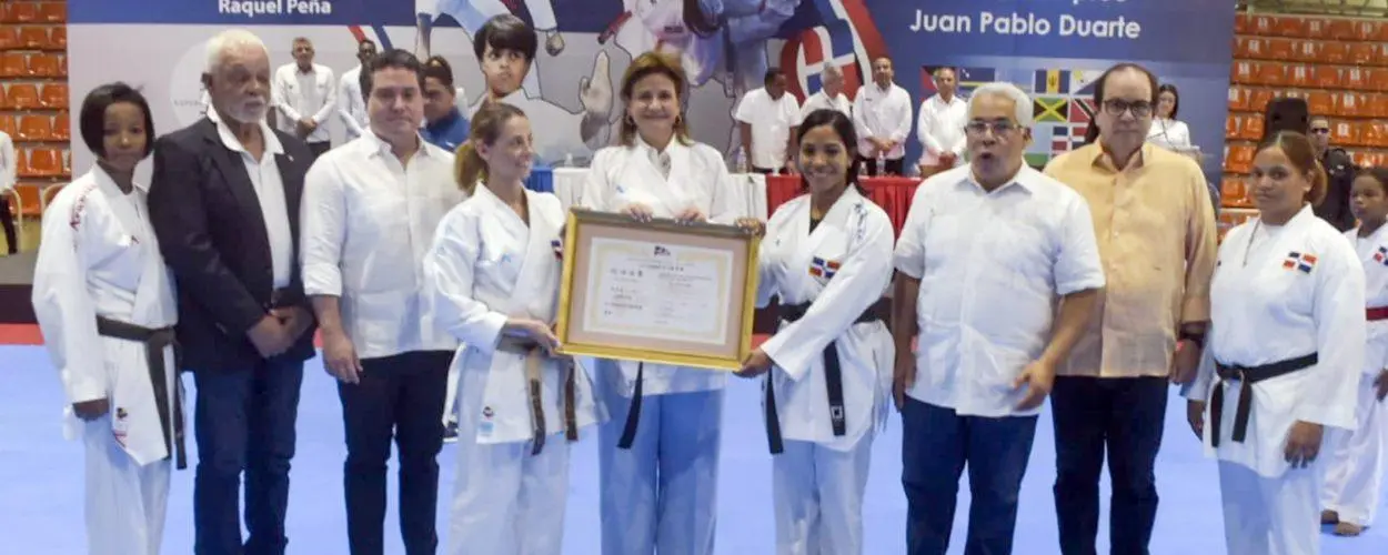 SANTO DOMINGO, RD.– La vicepresidenta de la República, Raquel Peña, encabezó el acto de clausura del Sexto Campeonato Caribeño de Karate que culminó con rotundo éxito, donde la República Dominicana obtuvo 54 medallas, 28 de oro, 13 de plata y 13 bronce para conquistar el primer lugar de la contienda donde accionaron 170 atletas de 15 países.
