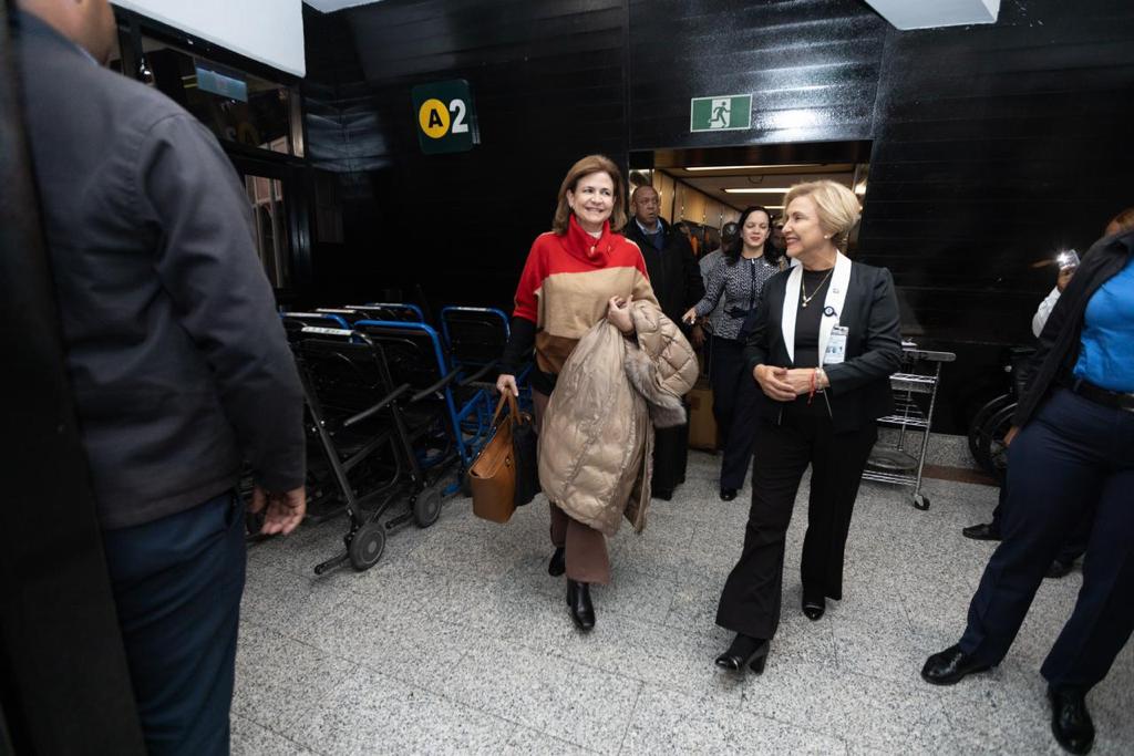 AEROPUERTO LAS AMERICAS, SANTO DOMINGO ESTE, RD.- La vicepresidenta de la República Dominicana, Raquel Peña, arribó al país la noche de este jueves luego de agotar su agenda de trabajo en la 54 edición del Foro de Davos, organizado por el Foro Económico Mundial.